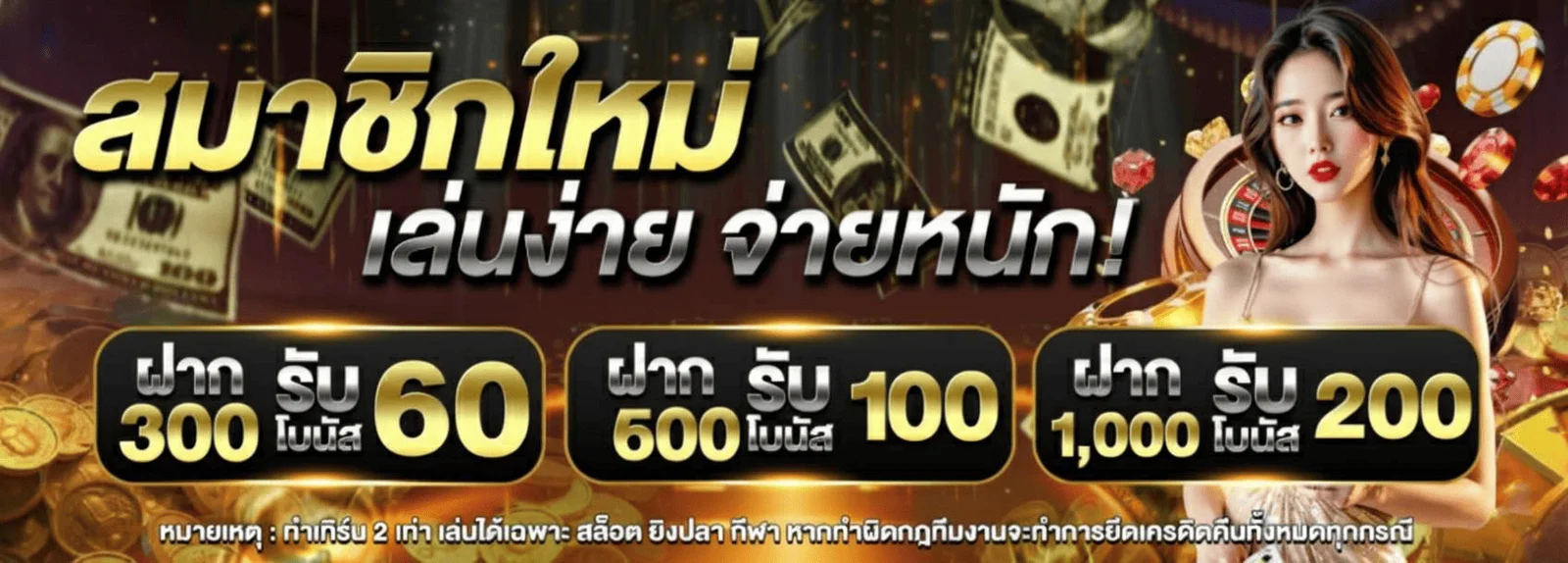 เพื่อนๆ ที่สนใจสามารถรับโบนัสนี้ได้ง่ายๆ เพียงสมัครสมาชิกและทำการฝากเงินครั้งแรกเท่านั้น ระบบจะทำการเพิ่มโบนัส 20% ให้ทันทีโดยอัตโนมัติ ยกตัวอย่างเช่น ถ้าคุณฝากเงิน 1,000 บาท คุณจะได้รับโบนัสเพิ่มอีก 200 บาท ทำให้มีเงินในบัญชีรวมถึง 1,200 บาทเลยทีเดียว